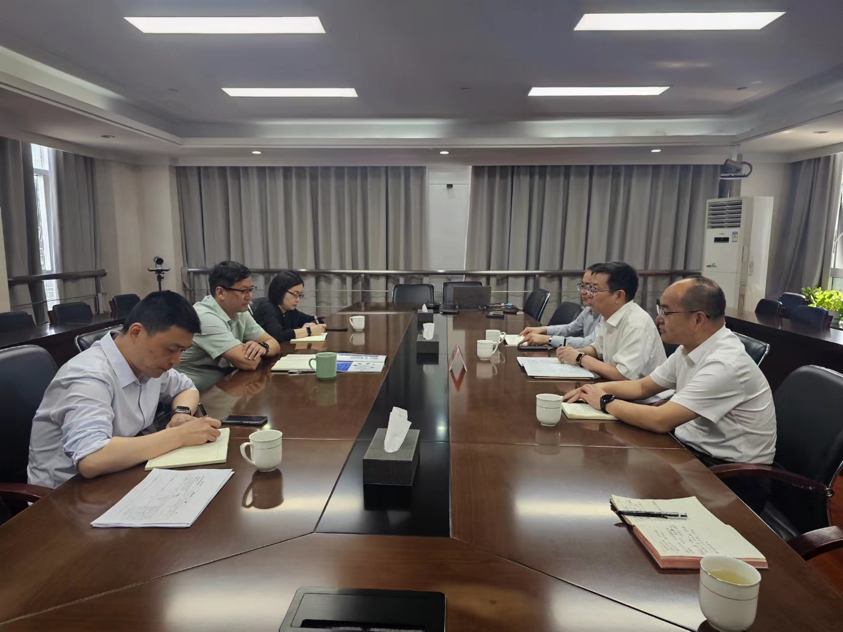 臨平交通集團有限公司經營部經理金鑫、財務部部長陶悅悅;中國二冶浙江分公司趙恒、路凱,練市大運河項目經理楊立光陪同會見。