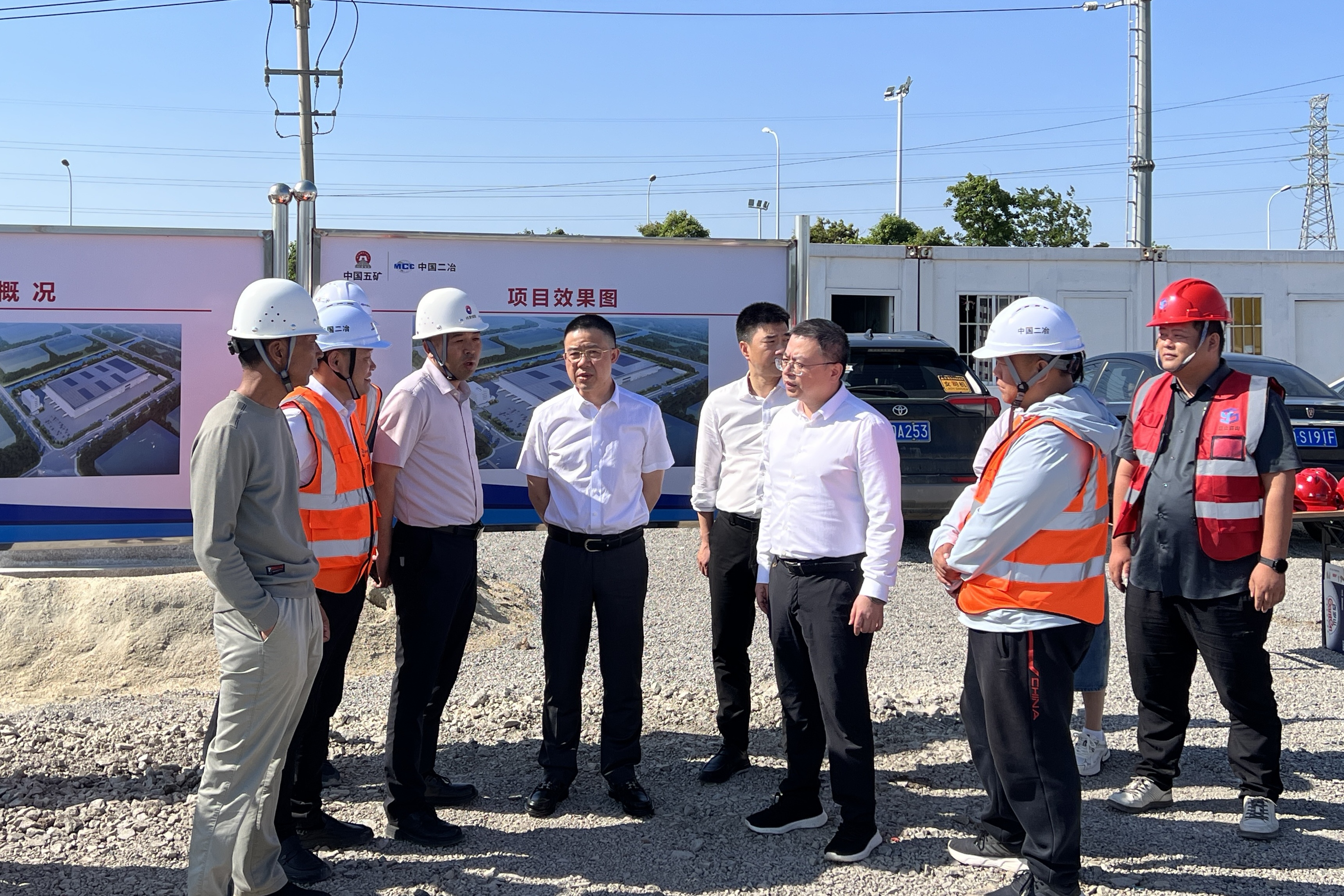 5月28日,溫嶺市委副書記、市長馬厲財一行到中國二冶緯景儲能鋅鐵液流電池(溫嶺)智造基地建設項目調研。副市長林曉敏、東部新區管委會主任林劍陪同調研。
