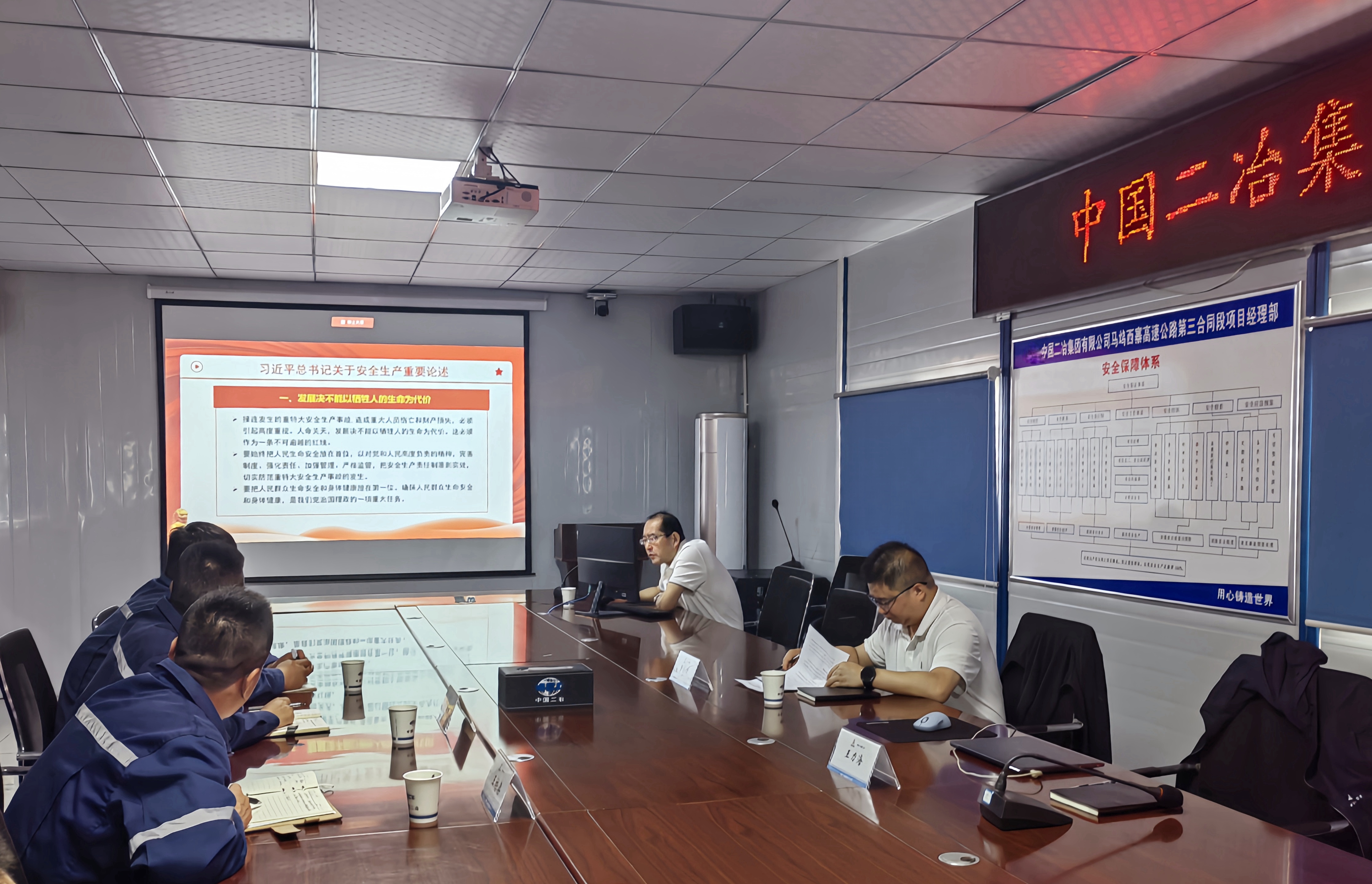 西北分公司安全生產(chǎn)監(jiān)督管理部負(fù)責(zé)人,馬塢項(xiàng)目部全體管理人員在主會(huì)場(chǎng)參加,分公司其他領(lǐng)導(dǎo)班子成員、機(jī)關(guān)各職能部室負(fù)責(zé)人,各項(xiàng)目部全體人員以視頻形式參加。