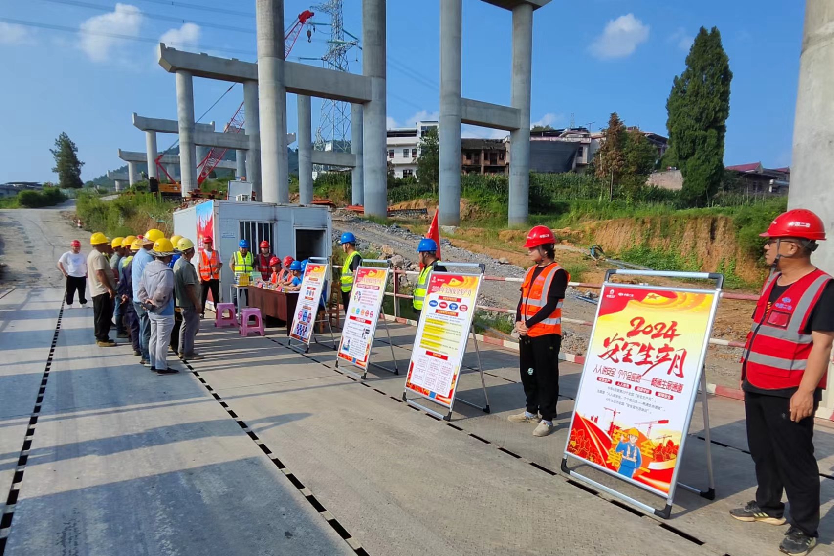 在湖南G59新新高速項目周家赧水特大橋鋼棧橋施工現(xiàn)場,項目部通過懸掛橫幅、發(fā)放安全宣傳手冊、設(shè)置咨詢臺、講解施工安全關(guān)鍵點等形式,宣傳安全生產(chǎn)法律法規(guī)及應(yīng)急避險常識等。分公司安全總監(jiān)坐鎮(zhèn)咨詢臺,以其豐富的業(yè)務(wù)知識及施工現(xiàn)場安全生產(chǎn)管理經(jīng)驗逐一解答作業(yè)人員提出的問題,為工友們“把脈治療、對癥下藥”,真正夯實參建人員“安全第一”的思想意識。活動期間,項目部還貼心為一線作業(yè)人員送上清涼物資,鼓勵大家齊心協(xié)力斗高溫、戰(zhàn)酷暑、保安全、促生產(chǎn)。