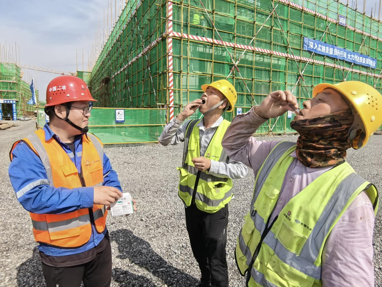 有效的防暑妙招像一股股清泉浸潤一線建設者的心田,中國二冶城建分公司千余名建設者戰高溫、斗酷暑,搶奪黃金施工期,確保項目全面履約,為公司全面完成三季度各項目標任務多創效益。