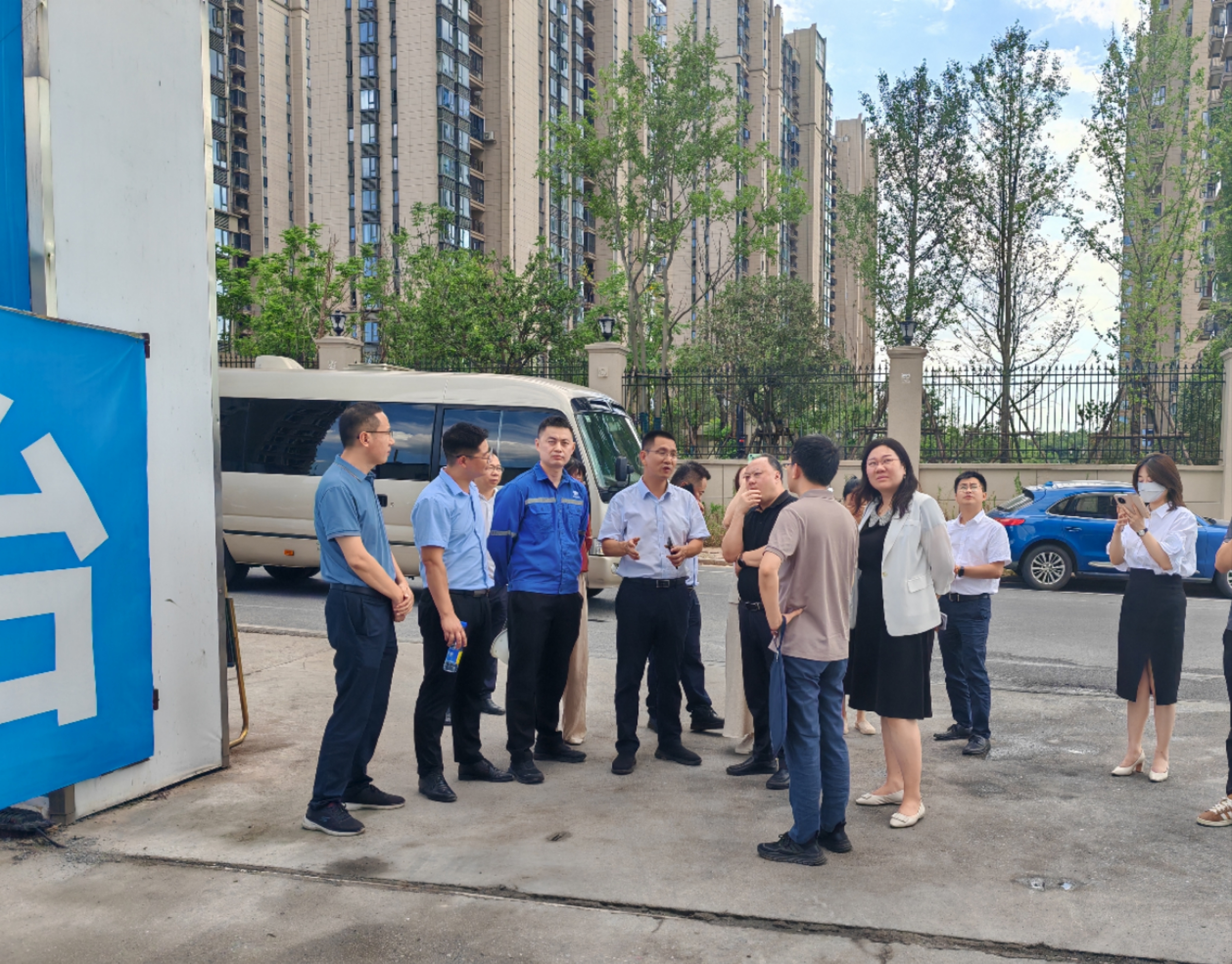 7月18日,株洲市住房和城鄉建設部住房保障司二級巡視員王超,株洲市政府副秘書長譚成華等國家房地產融資協調機制專班人員到中國二冶承建的株洲恒大譽景花園二期項目施工現場檢查指導。
