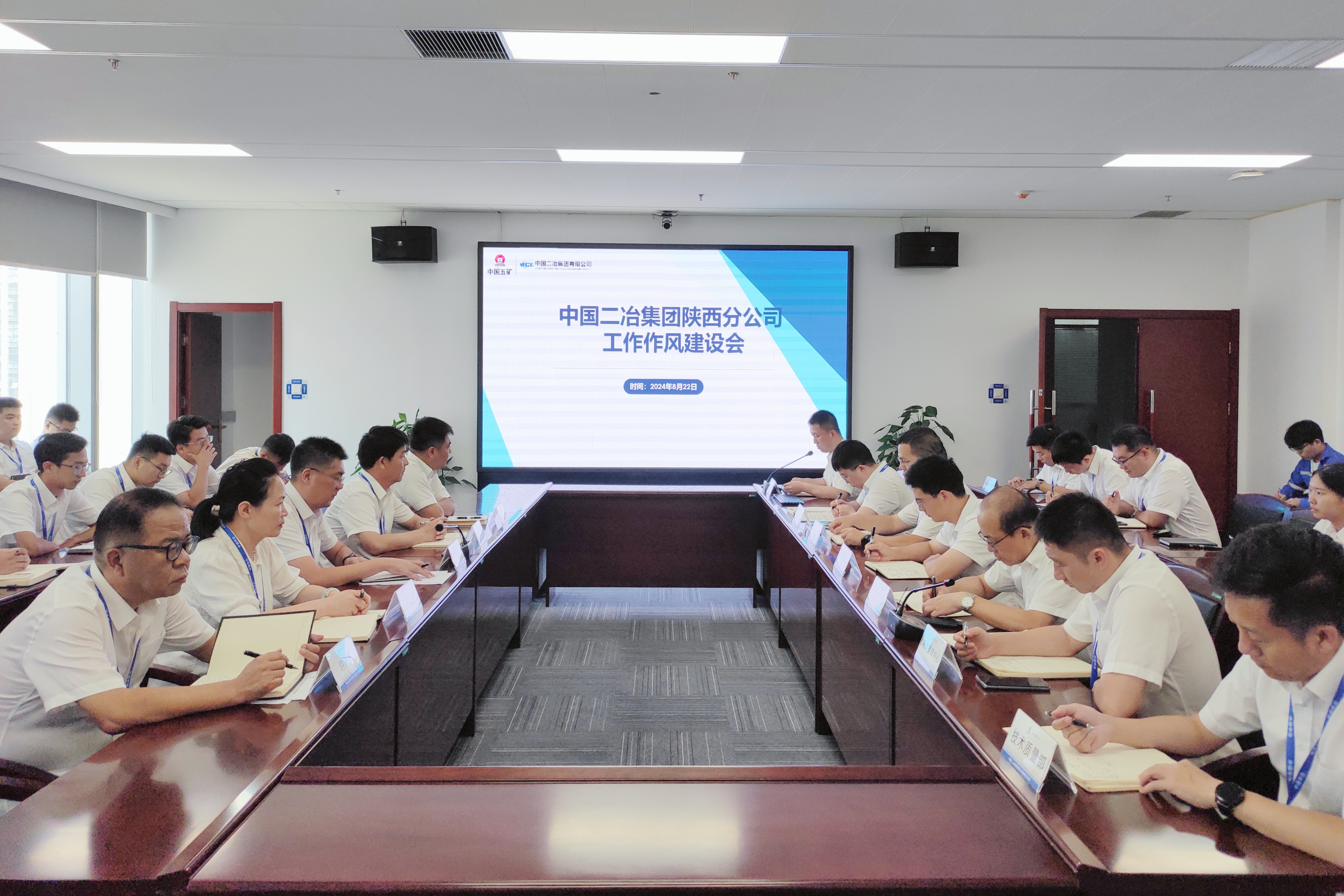 8月22日下午,中國二冶陜西分公司召開作風建設會議。會議全面貫徹黨的二十大、黨的二十屆三中全會精神,進一步壓實高質量發展責任,錘煉頑強作風,推動公司在大變局中深化改革、堅定發展。陜西分公司黨委書記、總經理李春杰出席會議并作講話。公司全體管理人員參加會議。