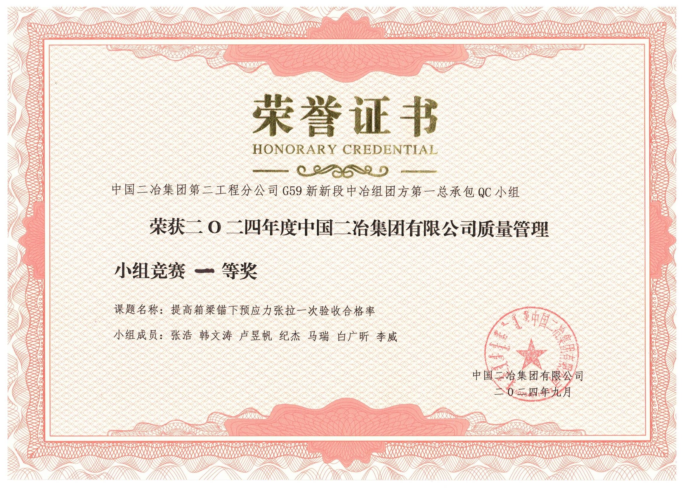 9月30日,在質(zhì)量月結(jié)束之際,公司2024年度QC成果發(fā)布會(huì)在1518會(huì)議室召開(kāi)。路橋分公司QC成果發(fā)布人盧昱帆代表分公司G59新新段中冶組團(tuán)方第一總承包QC小組發(fā)布的《提高箱梁錨下預(yù)應(yīng)力張拉一次驗(yàn)收合格率》通過(guò)最終選拔榮獲2024年度中國(guó)二冶質(zhì)量管理小組競(jìng)賽一等獎(jiǎng)。