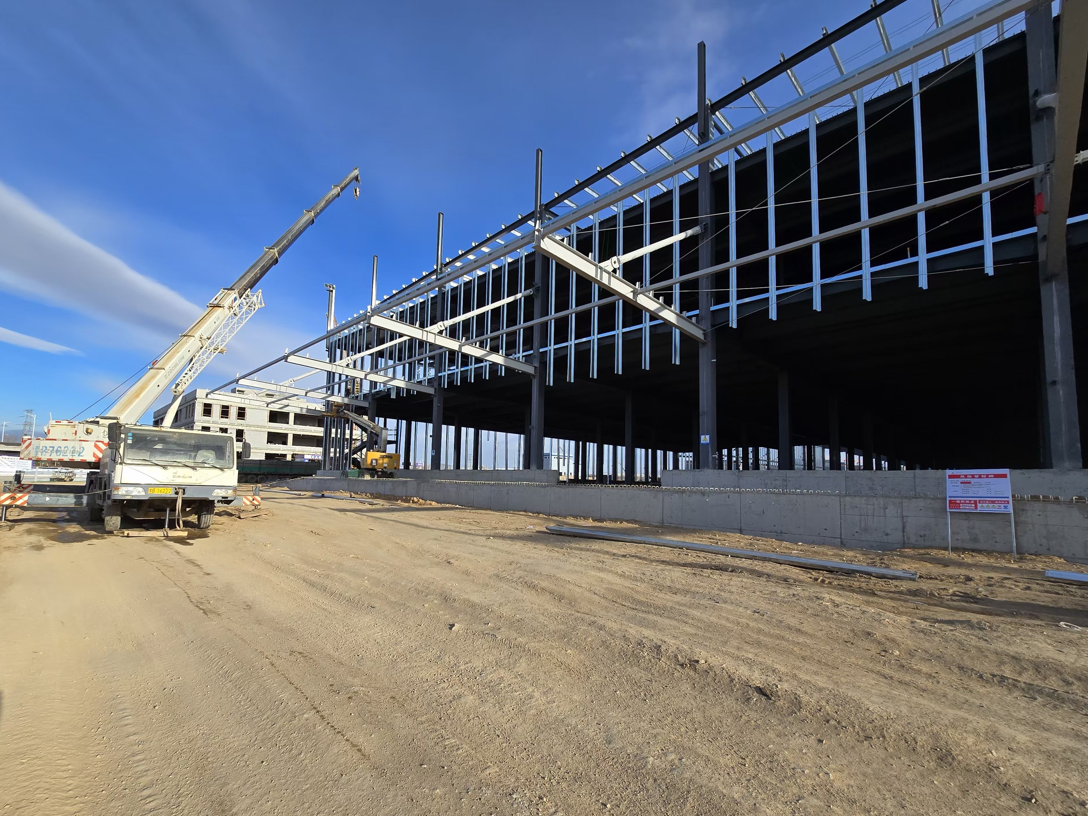 從清晨第一縷微光灑向大地,建筑工地上的工人們便已有條不紊地進(jìn)行著各項(xiàng)作業(yè),高聳的吊車(chē)揮舞著長(zhǎng)臂,精準(zhǔn)地吊運(yùn)著一根根檁條,在藍(lán)天的映襯下劃出一道道堅(jiān)毅的弧線。地面上,他們呼出的熱氣瞬間在空氣中凝結(jié)成霧,雙手被寒風(fēng)吹得干裂通紅,卻依然熟練地操作著焊接設(shè)備,四濺的焊花如同冬日里的絢爛煙火,照亮了他們專(zhuān)注而堅(jiān)毅的臉龐。弧光閃爍中,檁條之間實(shí)現(xiàn)了無(wú)縫對(duì)接,牢固的焊縫確保了整個(gè)圍護(hù)結(jié)構(gòu)的穩(wěn)固性和安全性,每一道焊縫都經(jīng)過(guò)嚴(yán)格的質(zhì)量檢測(cè),不容絲毫馬虎。