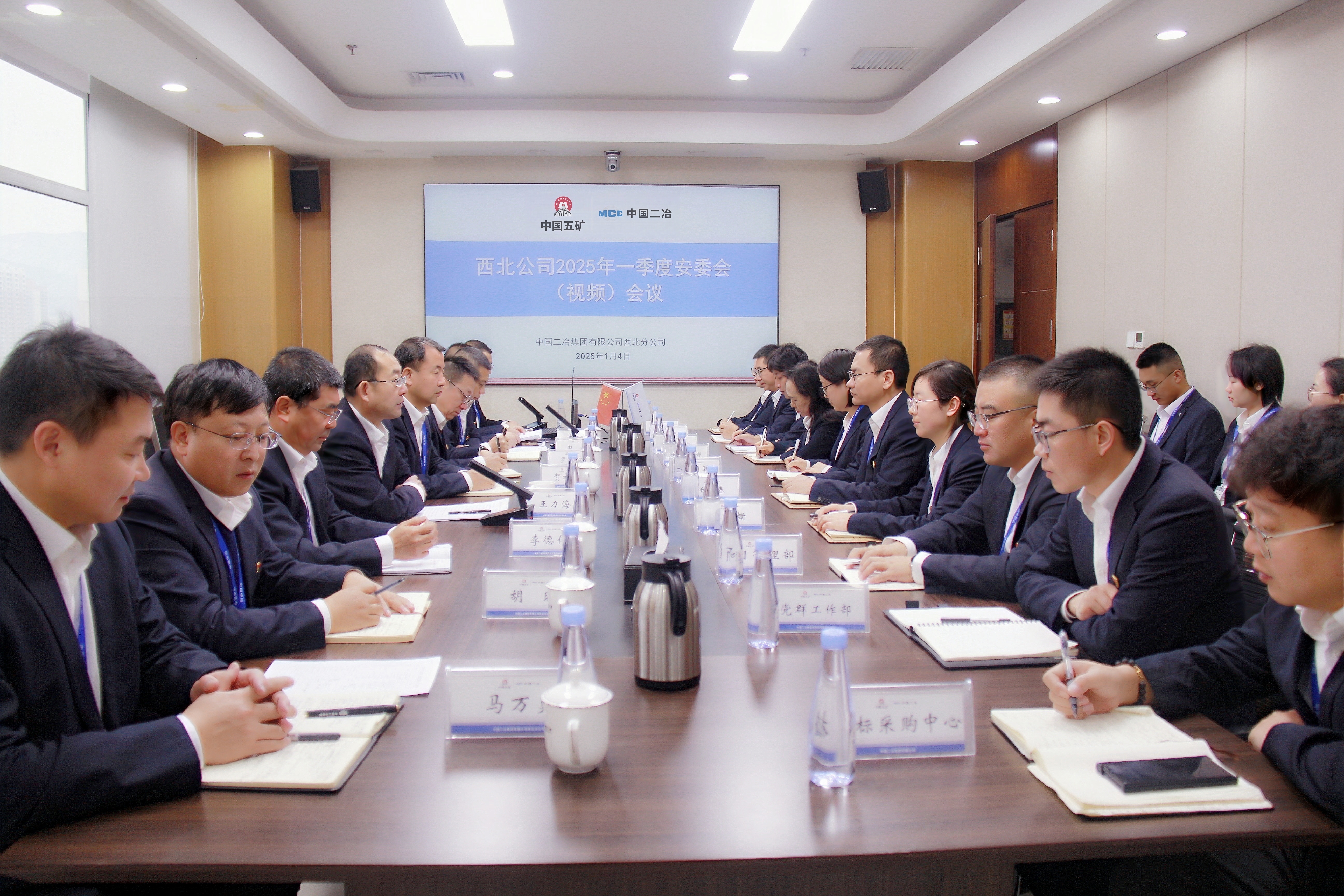 1月4日,西北分公司召開2025年一季度安委會(視頻)會議,傳達中國二冶2025年首次安委會會議精神,回顧2024年安全環保工作,總結經驗、分析形勢,部署2025年一季度安全環保各項工作。公司副總經濟師、市場開發部新能源事業部部長、西北分公司總經理、黨委副書記王力海主持會議并講話,西北分公司副總經理黃金波對安全環保工作提出要求。