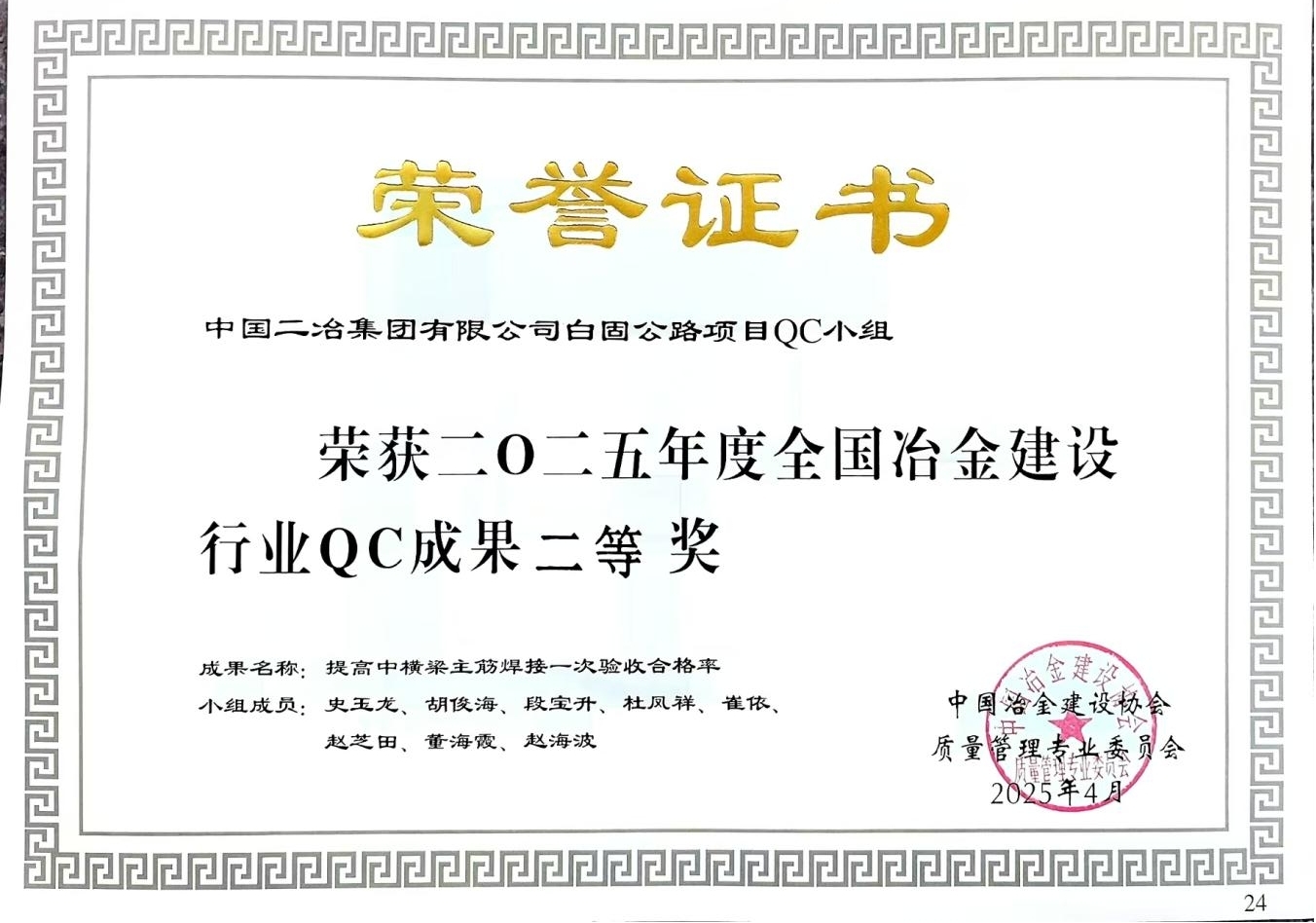 近日,由中國冶金建設(shè)協(xié)會舉辦的2025年度冶金建設(shè)行業(yè)質(zhì)量管理小組成果交流會在江蘇省無錫市召開,路橋分公司兩項(xiàng)QC成果分別榮獲2025年度全國冶金建設(shè)行業(yè)QC成果一等獎、二等獎。