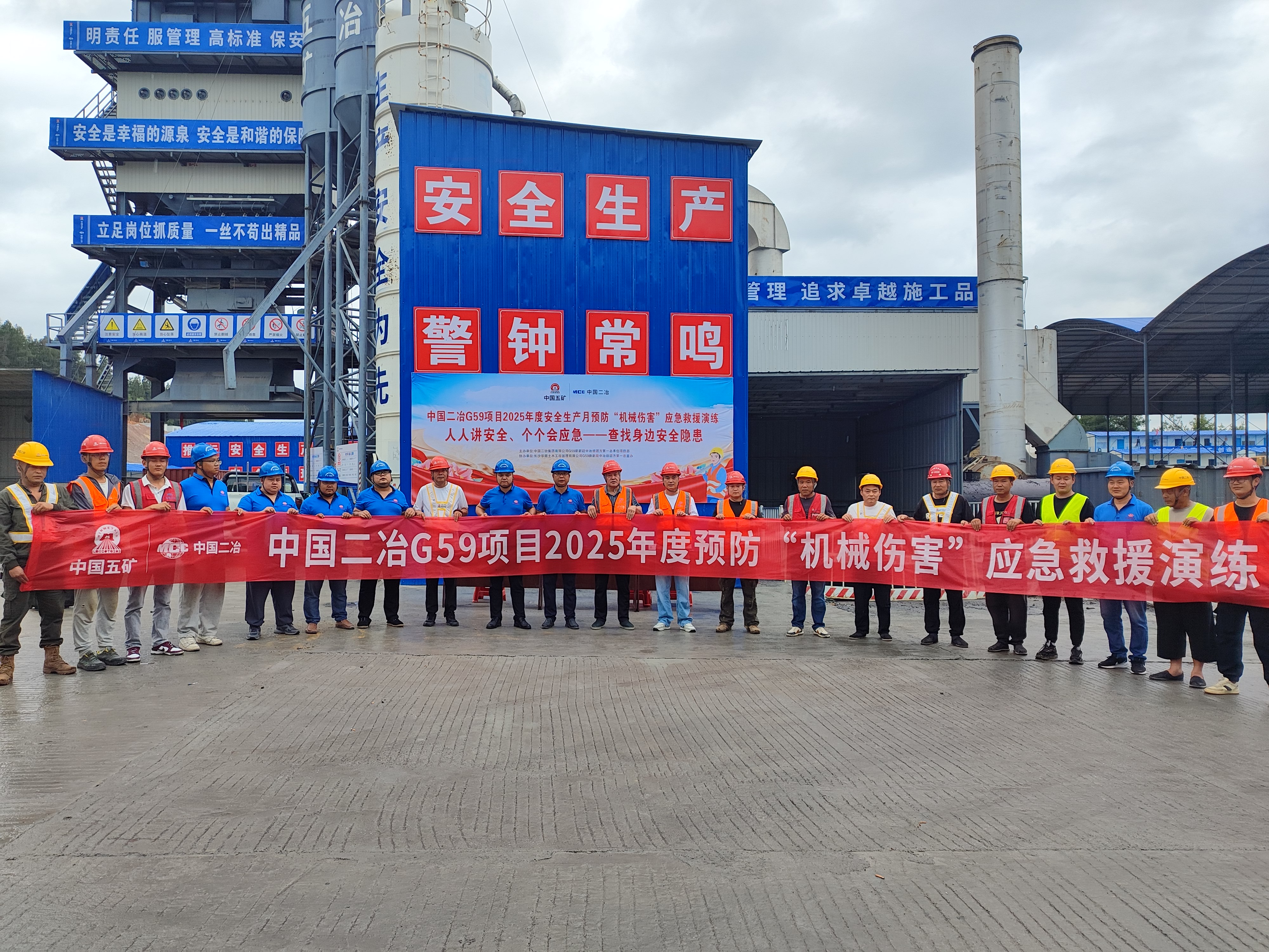 為切實提高項目應急處置能力,6月18日,G59高速公路項目在瀝青站施工現場組織開展了機械傷害事故應急救援演練。