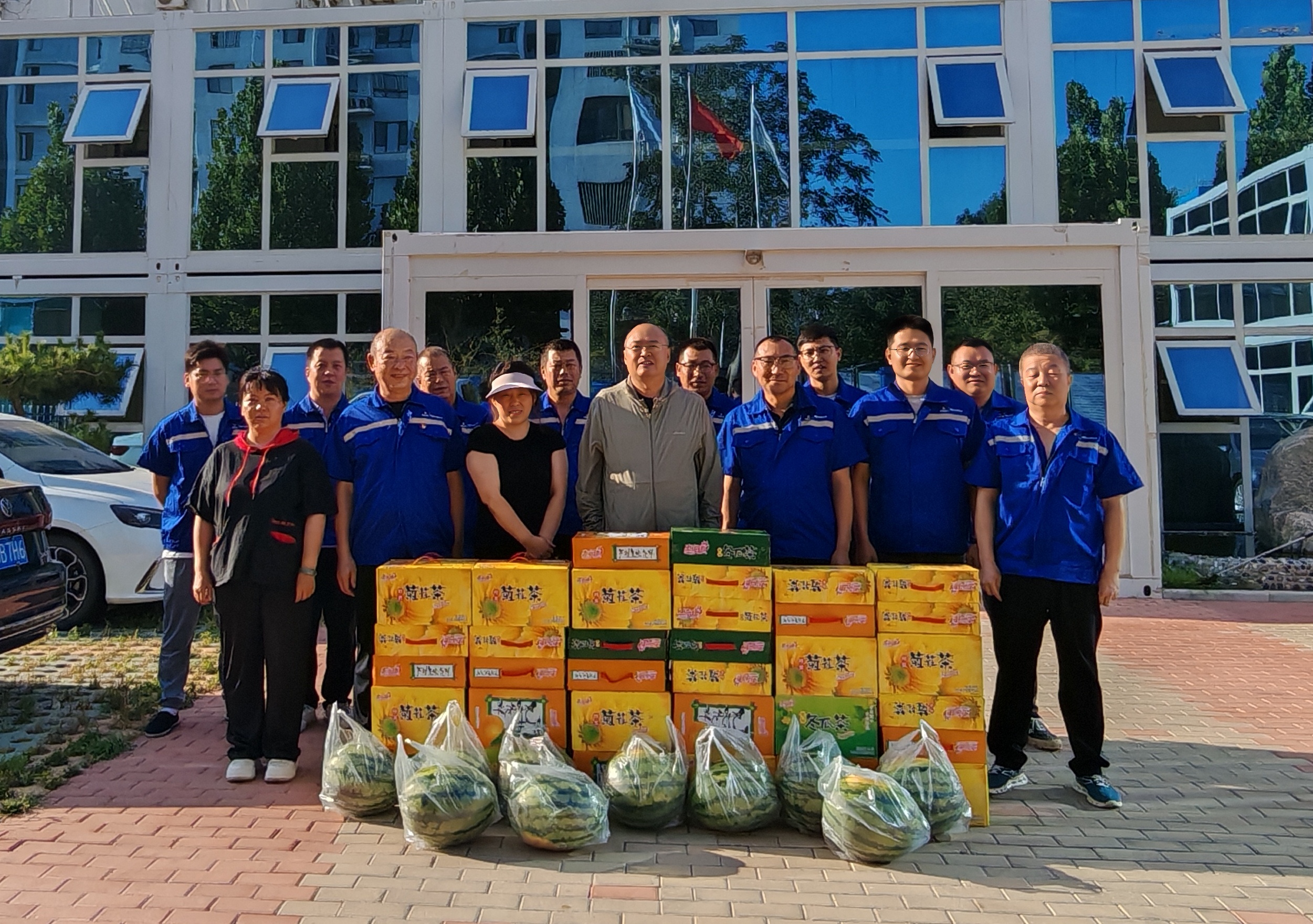 此次活動購置了飲品、西瓜等防暑降溫慰問品?;顒蝇F場,項波與員工親切交流,為奮戰在施工一線的員工送去組織的關懷和問候,感謝他們烈日下的堅守。他強調高溫期是安全事故易發、多發的關鍵時期,項目部要切實關注安全,繃緊安全弦,認真做好夏日施工安排,合理安排作業時間,保護好員工的合法權益,妥善安排好員工夏日施工期間的生活飲食,注意食品衛生,精心組織好施工生產,確保施工進度,完成節點目標。