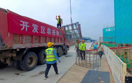 在這緊要關頭,中國二冶集團鶴壁項目部首當其沖,積極響應政府號召,迅速投入到落實防洪救災工作,踐行央企社會責任。但持續強降雨也使得鶴壁項目部施工現場受災嚴重,基坑被淹、機械設備被泡均無法使用,項目部當機立斷購置支援所需的焊機、切割機等機具,克服種種困難第一時間組織工人制作鋼筋籠,為抗洪一線送去援助。