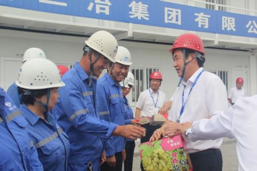 高文華首先對工作在一線員工們的辛勤工作表示感謝和崇高的敬意,聽取了項目負責人的工作匯報,并與大家親切交談,詳細了解員工們的工作生活情況,鼓勵所有員工,增強集體榮譽感和責任心,用奮斗譜寫二冶建設(shè)新篇章,并為他們發(fā)放了月餅、水果等節(jié)日禮物,勉勵他們要不忘初心、牢記使命、勇?lián)厝巍8呶娜A指出,在中秋和國慶“兩節(jié)”來臨之際,公司許多員工依然堅守工作崗位勤懇奉獻,正是“一天也不耽誤,一天也不懈怠”的企業(yè)精神,中國二冶才跑出了發(fā)展的“加速度”,公司對廣大員工及其家屬的辛勤付出與大力支持表示衷心感謝。