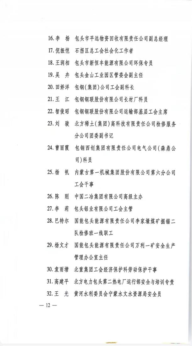 公司工會(huì)副主席王延祥表示,公司工會(huì)在今后的“安康杯”競(jìng)賽活動(dòng)中,將按照“安全第一、預(yù)防為主、綜合治理”的方針,動(dòng)員全體職工牢固樹立安全生產(chǎn)“紅線”意識(shí),堅(jiān)定不移踐行安全發(fā)展理念,深入開展“安康杯”競(jìng)賽活動(dòng),進(jìn)一步創(chuàng)新競(jìng)賽形式,豐富競(jìng)賽內(nèi)容,以安全文化建設(shè)為引領(lǐng),廣泛開展職工安全健康培訓(xùn)教育,組織動(dòng)員職工立足崗位查身邊隱患,改善作業(yè)環(huán)境,人人爭(zhēng)做促進(jìn)安全發(fā)展的主力軍,努力為公司的高質(zhì)量發(fā)展和包頭市經(jīng)濟(jì)建設(shè)貢獻(xiàn)央企力量。