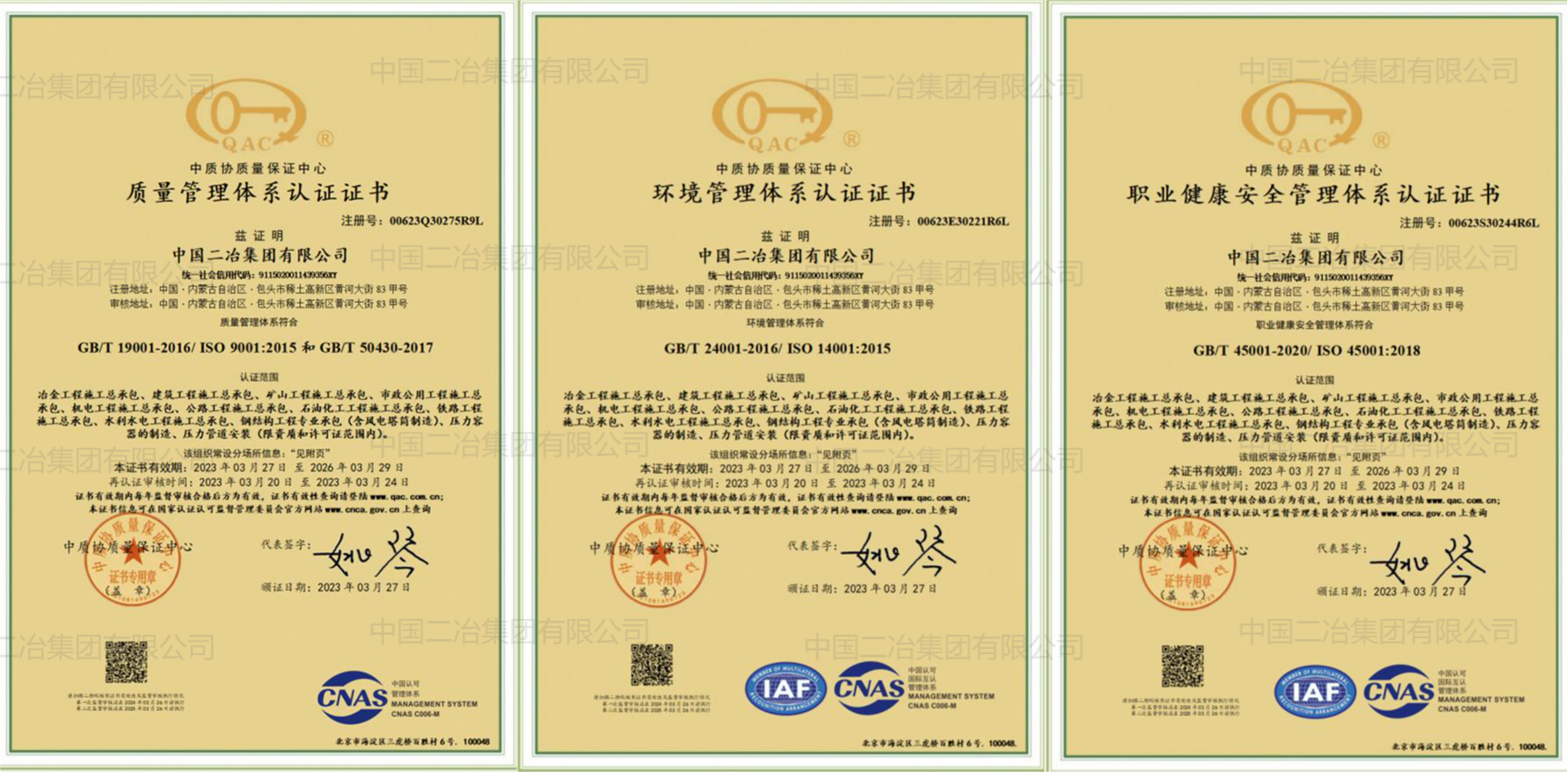 3月27日,中國二冶通過質量、環境、職業健康安全管理三體系再認證審核。