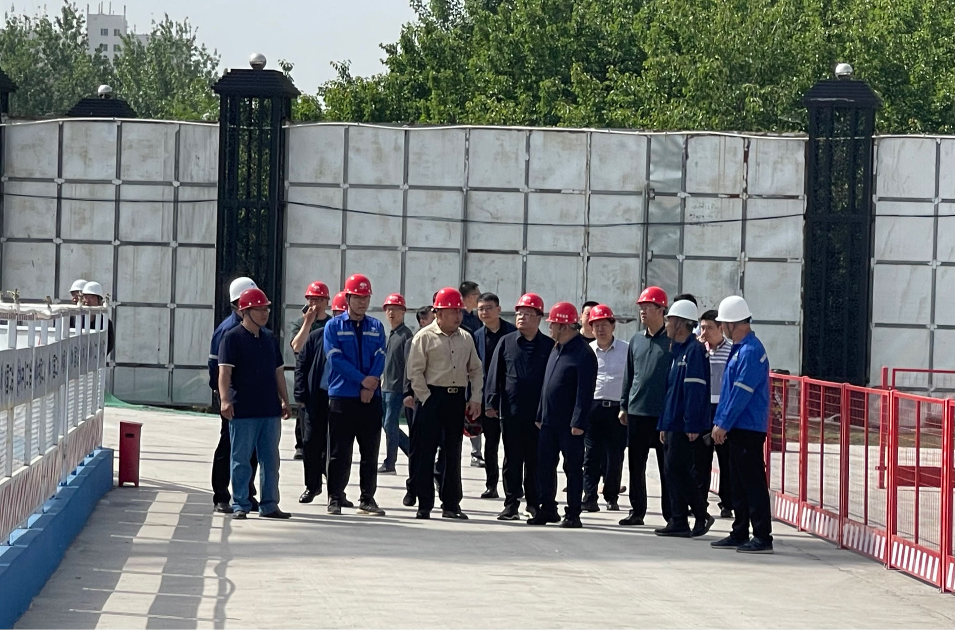 房欣一行首先詳細了解了項目規劃、工期、安全、質量等管理情況,隨后深入施工現場對工程施工進度、安全、環境保護、實名制等進行實地檢查。