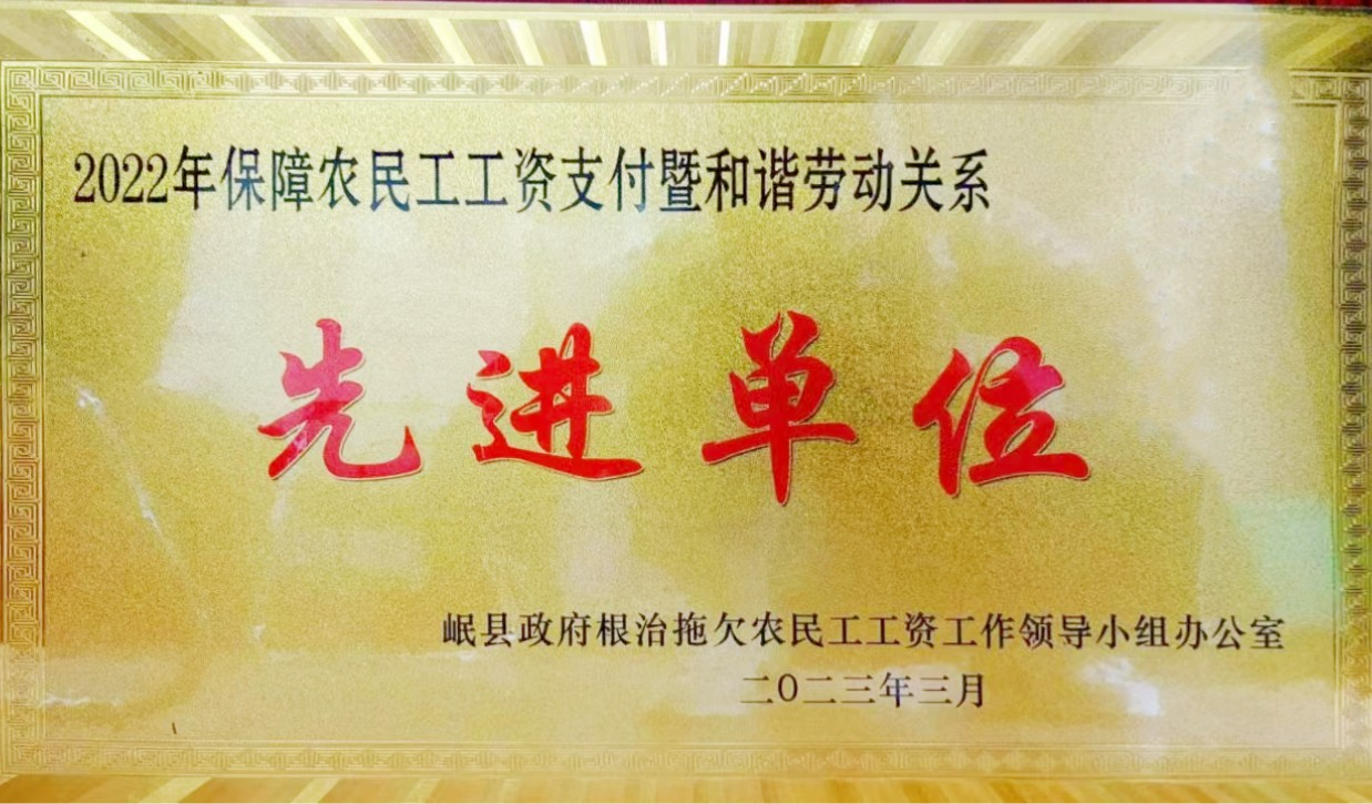 5月9日,中國二冶馬塢西寨項目獲評定西市岷縣2022年度保障農民工工資支付暨和諧勞動關系先進單位榮譽稱號。