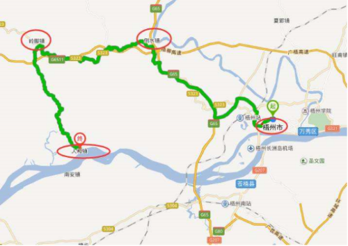 該項目路線起點位于賀州市昭平縣木格鄉與梧州市蒼梧縣京南鎮交界處,接S201潮江至木格公路,終點位于人和片區的人和港附近,接在建的S304梧州至藤州公路。路線全長51.492公里,實際建設里程48.589公里,公路等級為二級公路。總工期1100日歷天。
